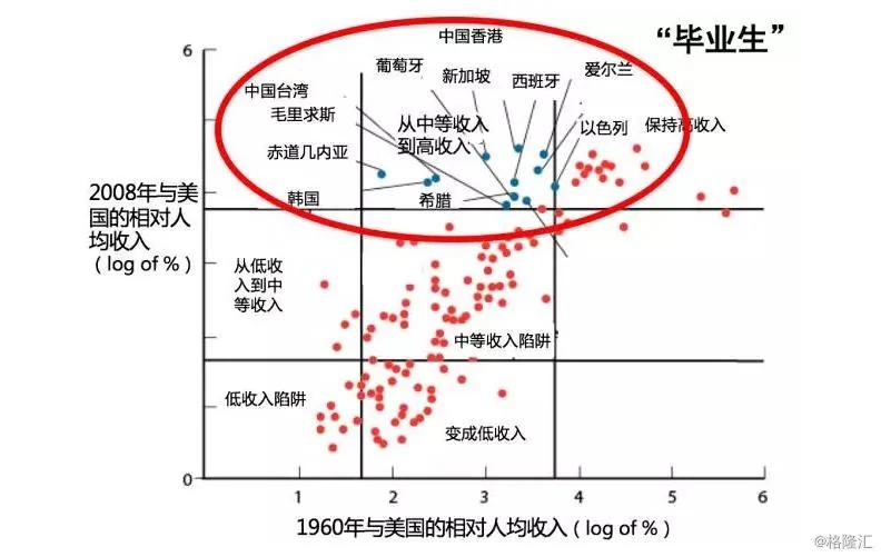 你看那些“畢業生”國家或地區,就是韓國、台灣、愛爾蘭、新西蘭這樣的地方,它們中等收入的時候就已經有了高等收入國家的人力資本的基礎。