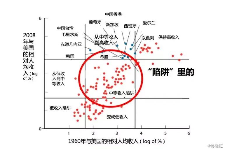 第二個我關心的群體,是“ 陷阱 ”裡的國家和地區,“陷阱”就是“中等收入陷阱”。