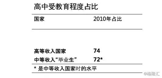 這個是高等收入國家——加拿大、美國,北歐,他們勞動力的將近75%,也就是 4個人裡有3個人,至少是高中畢業的 。