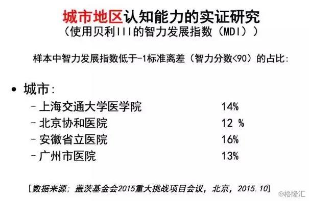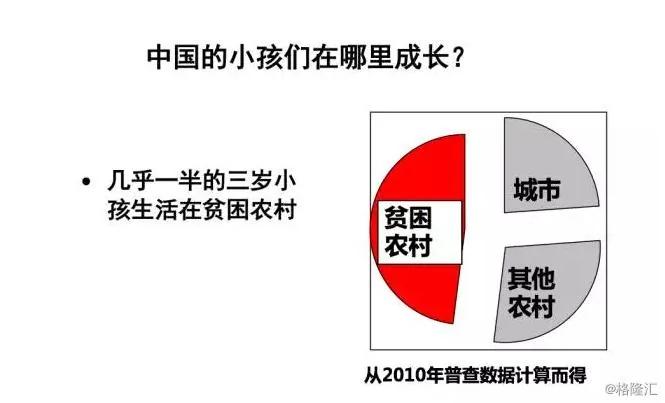 因為你要是3歲IQ慢,你就是到最後IQ慢——幾乎一半三歲的小孩生在中國農村,所以是幾乎一半的一半,幾乎是1/3的中國未來勞動力,IQ是低的。
