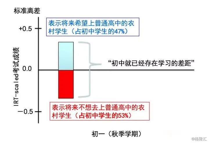 這個是北大跟陝西師範大學做的研究,我們去175所初中,做了一個很大的調查,有兩萬個人的樣本。 我們就做一個調查,問他們, 你三年以後想幹什麼。