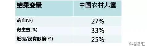 27% 的學生貧血。 33% ——3個學生里面就有1個,肚子裡面有蟲子。 最後,還有 25% 的學生是看不到黑板的。 你想一想,他怎麼能學?