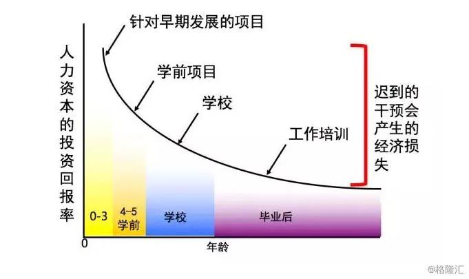 James Heckman,他是美國的經濟學家、諾貝爾獎獲得者,他算出來, 國家和家庭投資0到3歲,回報率是最高的 。
