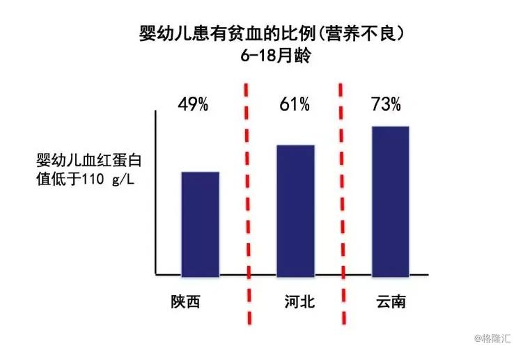 這個是6個月到18個月的嬰兒,一半以上的中國農村的寶寶是貧血的,比小學生的貧血比例更高。
