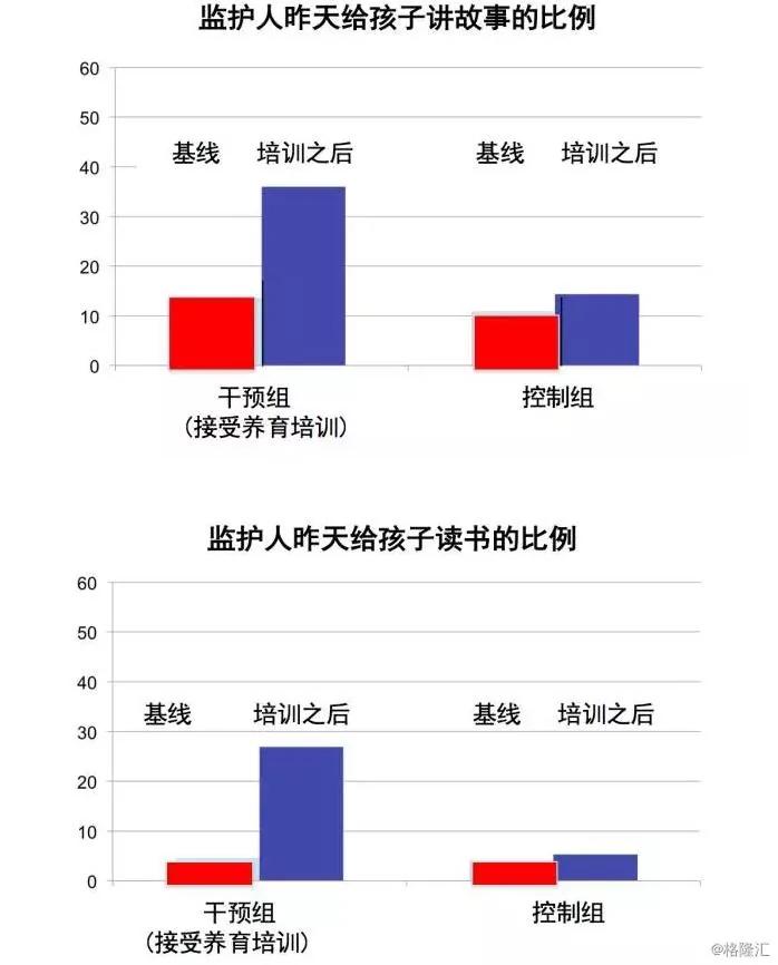 請注意這個圖帶給我們的兩個信息。 第一,我們的干預是有用的,有影響的;第二,還有很多家庭沒有做到。 問題在哪裡? 答案是一個詞,叫作奶奶——因為有一半的孩子是奶奶帶大的。